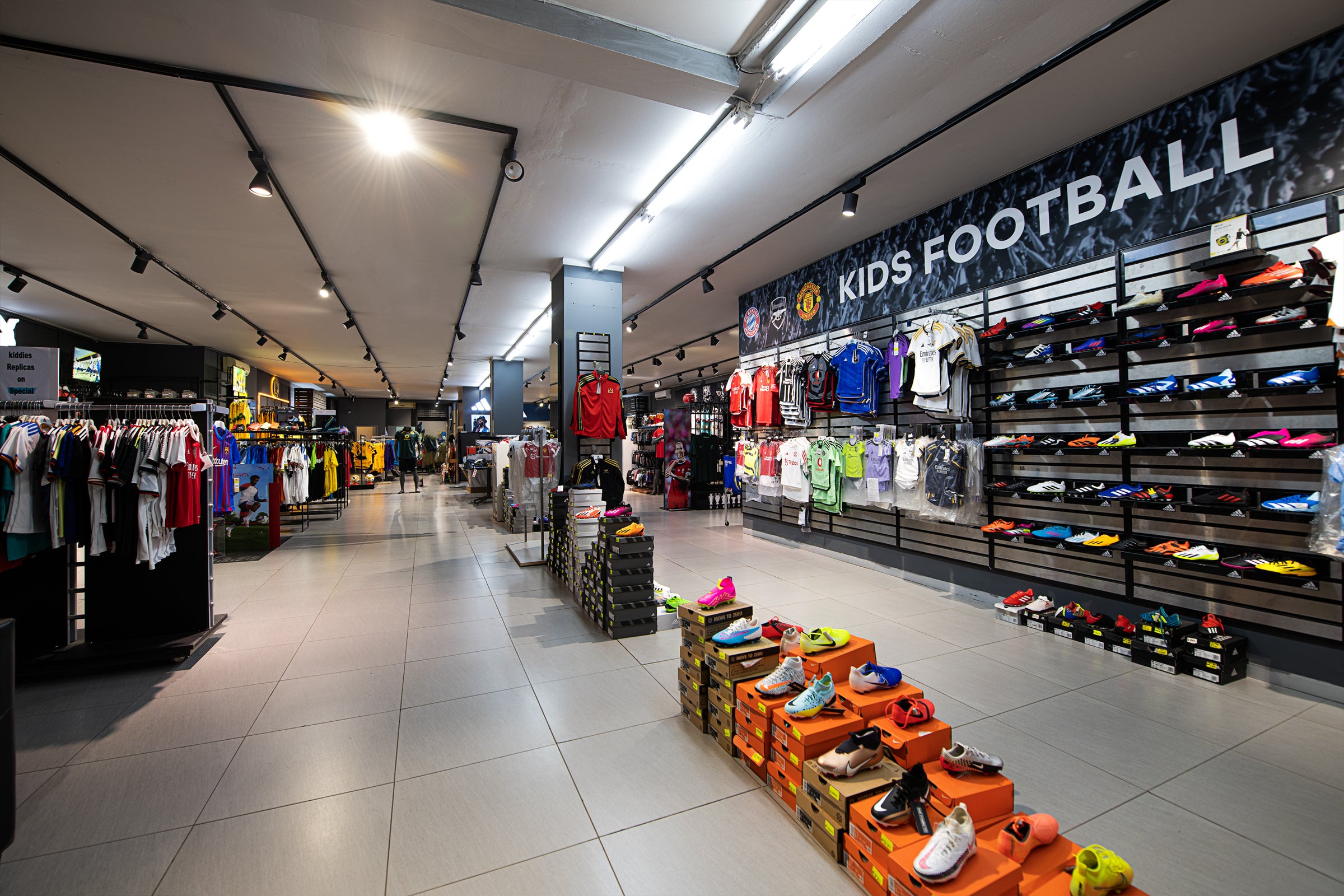 Rashid Cassim Sports opened its doors in 1990 as a 50 m² corner shop; today it fills six floors and 2 000 m², making it one of Africa’s largest independent sports retailers. Inside, you’ll find the continent’s most comprehensive brand roster: Nike speed kits, adidas Performance and Originals, Puma classics, Asics distance shoes, New Balance trainers, Under Armour compression, Babolat and Head padel rackets, Gunn & Moore and Kookaburra cricket bats, Gilbert rugby gear, Salomon trail essentials, Arena swimwear, and SKLZ training tech. From match-ready boots to everyday athleisure drops, every shelf is stocked with the newest releases—refreshed year-round so athletes and lifestyle fans alike can train harder, move smarter, and live sport every day.